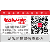 概述:消費者在購買已加入電碼防偽系統(tǒng)的企業(yè)所生產(chǎn)的產(chǎn)品時,在產(chǎn)品的包裝上可看到電碼防偽標(biāo)簽。只要揭開標(biāo)識的表層或刮開標(biāo)識的涂層,就可以看到一由16位數(shù)字組成的密碼,此密碼是唯一的,只能使用一次,假冒者無法仿造重復(fù)使用。